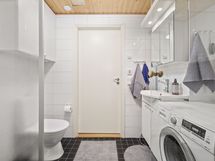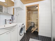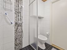 - Suihku, Mukavuuslattialämmitys, Tilaa pesukoneelle, Käsisuihku, Kaapisto, Allas, Suihkuseinä, WC-istuin, Peilikaappi