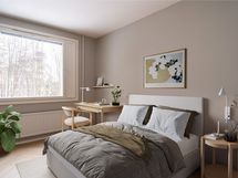 Pohjaratkaisu on on todella tilava ja väljä. Kulmahuoneistona ikkunapinta-alaa löytyy reilusti, jolloin luonnonvalo tuo tiloihin sopivasti valoa ja avaruutta. Ikkunanäkymät ovat puistomaiset ja Intiölle tyypilliset: rauhalliset.