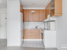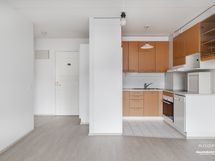 - Keittiön varusteet: Jääkaappipakastin, liesi, astianpesukone ja talotuuletin. Liesi: Induktioliesi. Työtason materiaali: Laminaatti.