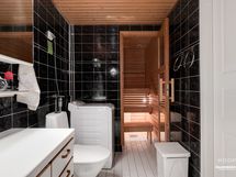 - Pesutilojen varusteet: WC-istuin, suihku, pesukoneliitäntä, peilikaappi, pesuallas, allaskaappi ja bidee-suihku.