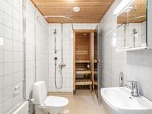 Tervetuloa tutustumaan tähän 36 m²:n tilavaan hissitalon 3. kerroksen yksiöön, jossa on erinomainen pohjaratkaisu ja kaikki mukavan asumisen elementit kompaktissa paketissa. Koti avautuu valoisaan olohuonetilaan, josta on käynti suurelle parvekkeelle – täydellinen paikka rentoutumiselle ja kesäpäivien vietolle. Keittokomero on sijoitettu käytännöllisesti olohuoneen yhteyteen, ja sen selkeä layout tekee ruoanlaitosta sujuvaa. Asunnon kruununa on oma sauna sekä tilava kylpyhuone, joissa on hyvin tilaa arjen pyykkihuollolle. Eteistilassa on runsaasti säilytyskaappeja, jotka pitävät arjen toimivana ja kodin siistinä. Toimiva pohja, hyvät säilytystilat ja oman saunan tuoma lisämukavuus tekevät kokonaisuudesta houkuttelevan.