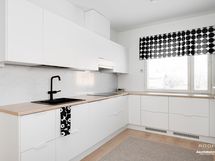 - Työtason materiaali: Laminaatti. Remontoitu kokonaan 2021! Varustus: Jääkaappi, pakastin, induktiotaso, liesituuletin, astianpesukone, uuni, mikroaaltouuni. Integroidut koneet.