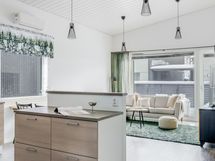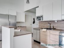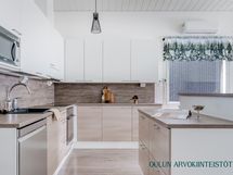 - Varusteet: jääkaappi, pakastin, astianpesukone. Työtaso: laminaattitaso. Liesi: induktioliesi, erillisuuni, liesituuletin hormilla. Moderni ja ajattoman vaalea sekä suunniteltu arjen sujuvuutta että yhdessäoloa ajatellen. Tyylikäs saareke tarjoaa työskentely- ja säilytystilaa sekä toimii luontevana rajapintana oleskelutiloihin. Laadukkaat kodinkoneet, selkeät linjat ja hyvät kaappitilat tekevät keittiöstä toimivan kokonaisuuden, jossa ruoanlaitto on vaivatonta ja viihtyisää.