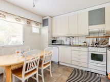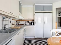 - Jääkaappi, pakastekaappi, keraaminen liesi, liesikupu, astianpesukone, kaapistot, kiinteät valaisimet.