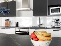 Induktioliesi, Jääkaappipakastin, Kaapisto, Liesituuletin, Astianpesukone, Erillisuuni, Pesukoneliitäntä
