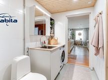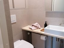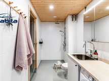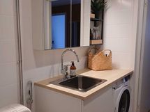 - Suihku, Pesukoneliitäntä, Mukavuuslattialämmitys, Tilaa pesukoneelle, Käsisuihku, Allas, WC-istuin, Peilikaappi