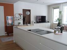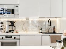 - Induktioliesi, Jääkaappi, Jääkaappipakastin, Kaapisto, Liesituuletin, Astianpesukone, Erillisuuni, Mikroaaltouuni, Pesukoneliitäntä