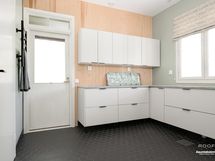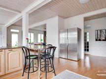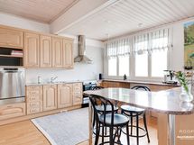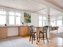 - Keittiön varusteet: Jääkaappi, erillinen pakastin, mikroaaltouuni ja astianpesukone. Liesi: Induktioliesi. Työtason materiaali: Kivi. Puustellin tammikalusteet.