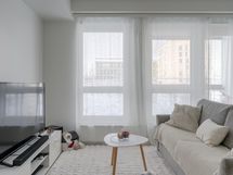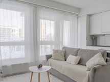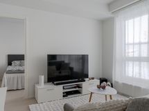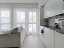 Tämä huoneisto tarjoaa toimivan ja ajanmukaisen pohjaratkaisun. Keittiö ja olohuone muodostavat yhtenäisen, avaran oleskelutilan, jossa suuret ikkunapinnat tuovat runsaasti luonnonvaloa. Tilaan on helppo sijoittaa ruokailuryhmä kuin sohvaryhmä.