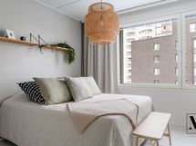 Kaksi makuuhuonetta tarjoavat mukavasti tilaa ja molemmissa on kaapistot. Erillinen wc ja tilava pesuhuone helpottavat arkea ja oma sauna tuo rentouttavan lisän asumismukavuuteen.