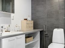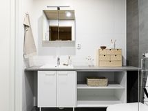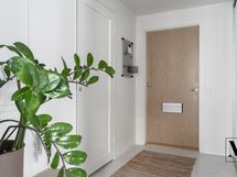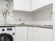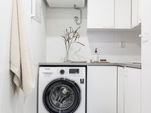 Sisääntulon yhteydessä sijaitsee käytännöllinen kodinhoitohuone, jossa hoituu vaivattomasti pyykkihuolto ja vaatteiden kuivaus.
