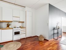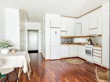 - Jääkaappi/pakastin, uuni, liesi, liesituuletin, astianpesukoneliitäntä, astianpesukone, kaapistot