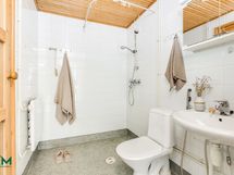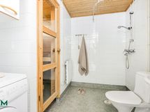 - Kylpyhuone, suihku, pesukoneliitäntä, pesukone, peilikaappi, bidee, wc-istuin, käsienpesuallas, kiinteät valaisimet, sähkösauna