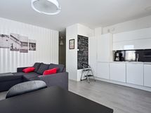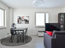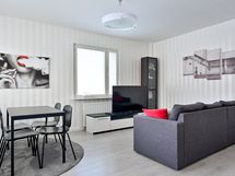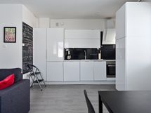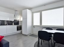 - Keittiön varusteet: Pyykinpesukoneliitäntä, jääkaappipakastin, liesituuletin ja astianpesukone. Liesi: Induktioliesi. Työtason materiaali: Laminaatti.