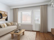 Huoneistossa on laadukkaat laminaattilattiat ja vaaleaksi maalatut seinät. Tilava kylpyhuone on kaakeloitu ja oma sauna ja tilava parveke tuovat lisämukavuutta asumiseen. Keittiössä varustuksena mm. astianpesukone, liesi ja jääkaappipakastin. Kylpyhuoneessa varaus pyykinpesukoneelle.