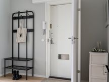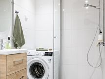 - Pesutilojen varusteet: WC-istuin, suihku, suihkuseinä, pesukoneliitäntä, lattialämmitys, peili, allaskaappi, pesuallas ja bidee-suihku.