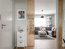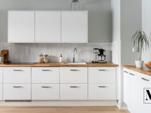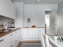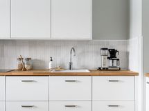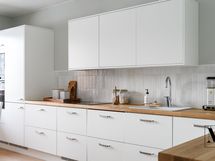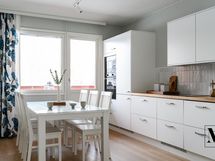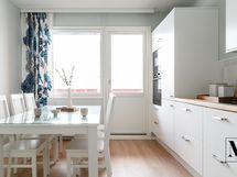 - Keittiön varusteet: Jääkaappipakastin, mikroaaltouuni, astianpesukone, erillisuuni ja liesituuletin (aktiivihiilisuodattimella). Liesi: Induktioliesi. Työtason materiaali: Puu.