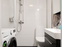 - Pesutilojen varusteet: WC-istuin, suihku, pesukoneliitäntä, bidee-suihku, lattialämmitys, peili ja kaapistot. Pesutilojen kuvaus: Kylpyhuone on remontoitu 2011. Erillisten WC:n lukumäärä: 1. Erillisen WC:n kuvaus: wc-istuin kylpyhuoneen yhteydessä.