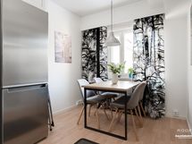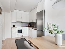 - Keittiön varusteet: Jääkaappipakastin, uuni, liesituuletin, astianpesukone ja liesi. Liesi: Keraaminen liesi. Työtason materiaali: Laminaatti. Keittiö on remontoitu 2011 ja astianpesukone uusittu 2024.