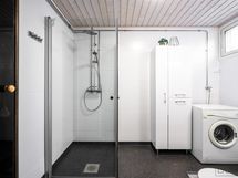 - Tarjoaa mainiot puitteet arjen vaatehuollolle. Varustus: pesukoneliitäntä, wc-istuin, suihku, kiinteät valaisimet.