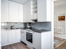 - Liesi: induktio. Työtasot: laminaatti. Kylmäsäilytys: jääkaappi/pakastin. Varustus: liesituuletin, astianpesukone. - Tilavassa keittiössä on paljon säilytys- ja työskentelytilaa sekä ajanmukainen varustelu.