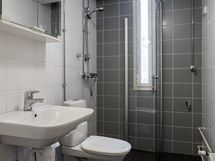 - Pesutilojen varusteet: Suihku, suihkuseinä, pesukoneliitäntä, lattialämmitys, peilikaappi, pesuallas ja bidee-suihku. Pesutilojen kuvaus: Kylpyhuone on remontoitu täydellisesti putkiremontin yhteydessä. Tila on siistissä ja hyvässä kunnossa. Erillisten WC:n lukumäärä: 1.