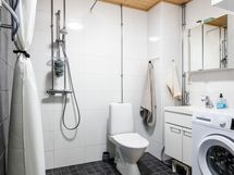 - Varustus: pesukoneliitäntä, lattialämmitys, wc-istuin, suihku, peilikaappi, peili.