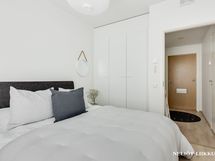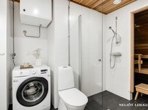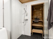 Makuuhuoneesta herätessä voi nauttia suoraan ikkunasta avautuvasta upeasta maisemasta merelle. Kylpyhuoneessa on kompaktisti kaikki arjen toiminnot wc-tiloineen, kodinhuollon mahdollisuuksineen sekä lasiseinän takana olevine suihkuineen. Kylpyhuoneen harmoninen sävymaailma kestää myös aikaa. Oma lämminhenkinen sauna kutsuu rentoutumaan ja lasitetulla parvekkeella kelpaa viilentyä löylyjen jälkeen maisemia ihaillen.