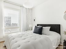 Tämän 9. kerroksen kaksion valttikortti on todella upeista näkymistä ja auringonlaskuista nauttiminen. Autohallipaikka myydään omana osakkeena.