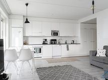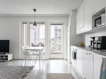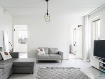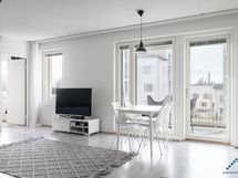 Tässä kolmannen (3/5) kerroksen tyylikkäässä ja valoisassa kolmiossa on vaaleat seinäpinnat ja laminaattilattiat. Kaakeloidussa kylpyhuoneessa on paikka ja liitännät pyykkikoneelle. Sauna lisäämässä asumismukavuutta. Keittiössä ajanmukaiset kalusteet, astianpesukone, liesi/uuni ja jääkaappipakastin. Oma tilava lasitettu parveke tuo avaruuden tuntua ja viihtyisyyttä asumiseen.