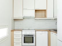 - Jääkaappipakastin, sähköliesi, liesituuletin, astianpesukone, kaapistot, kiinteät valaisimet.