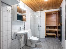 - Pesutilojen kuvaus: Varustus mm. suihku, suihkuseinä, WC-istuin, pesuallas, paikka pesutornille, pyykinpesukoneliitäntä. Erillisten WC:n lukumäärä: 1. Erillisen WC:n kuvaus: WC-istuin kylpyhuoneessa.
