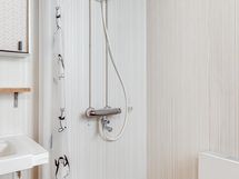 - Sauna, sähkökiuas, kylpyhuone, erillinen wc, suihku, peilit, peilikaappi, pesukoneliitäntä, kiinteät valaisimet.