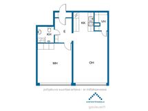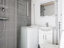 - Varusteet: suihku, suihkuseinä, peilikaappi, allaskaappi, kiinteät valaisimet, pesukoneliitäntä, WC