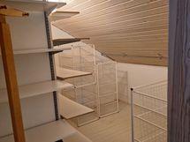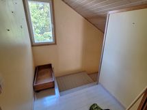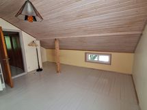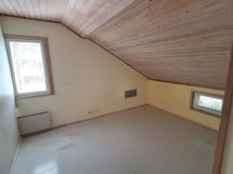 Yläkerrassa on kolme valoisaa makuuhuonetta, joissa viistokatot. päämakuuhuoneen yhteydessä on tilava vaatehuone. Väliseinä kahden makuuhuoneen välille on tehty myöhemmin. Yläkerrassa on myös wc.