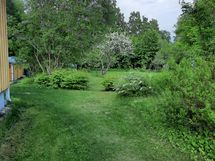 Oman tontin koko on yli 3600 m². Tontilla kasvaa erilaista puustoa (mm. vaahteroita, koivuja, pihlajia, mäntyjä, lumipalloheisi, syreenejä, omenapuita), marjapensaita, ruusupensaita (juhannusruusua, Mustialanruusua, tarhakurtturuusua), metsävadelmaa. Polttopuuta saa siis omalta tontilta vielä runsaasti.