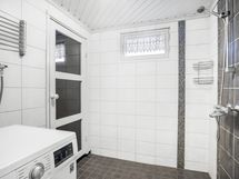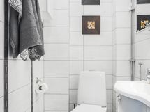 Pesutilojen varusteet: Suihku, pesukoneliitäntä, lattialämmitys ja kiinteät valaisimet. Erillisten WC:n lukumäärä: 1. Erillisen WC:n kuvaus: peilikaaapi, allaskaappi.