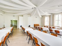 - Pesutilojen kuvaus: Alakerrassa yksi kylpyhuone Juhlatalossa. Asuintalossa suihkuhuone. Varustus: suihku, peili. Erillisen WC:n kuvaus: Juhlatalossa 1 inva-wc, 1 miesten ja 1 naisten wc, jossa kaksi istuinta, sekä 1 henkilökunnan wc.