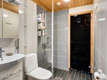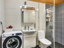 - Pesutilojen varusteet: WC-istuin, suihku, suihkuseinä, pesukoneliitäntä, peilikaappi, pesuallas, allaskaappi ja bidee-suihku.