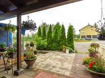 - Asunnon sisäänkäynti ja piha-alue luoteeseen