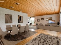 Talon isossa olohuoneessa on paikka niin ruokapöydälle kuin sohvaryhmälle. Keittiö on käytännöllinen, ja sen yhteydessä oleva apukeittiö tarjoaa lisää säilytystilaa. Kolme makuuhuonetta tarjoavat mukavasti tilaa perheelle tai vieraille.