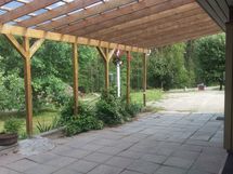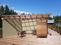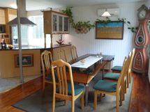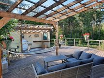 - Valoisa, Paljon ikkunoita, Terassi, Oma piha, Useampi sisäänkäynti, Kodinhoitohuone, 2 varaavaa takkaa, terassi keittokatoksella,