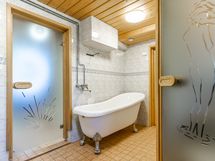 - Varusteet: Sähkökiuas. Uusittu 2006, saunan lauteet, saunapaneeli. Kiiteistöllä erillinen savusauna. Seinämateriaali: Paneeliseinä. Lattiamateriaali: Laattalattia