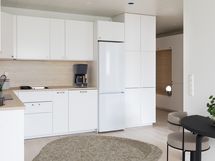 - Astianpesukone, Sähköliesi, Liesituuletin, Liesi tai uuni erikseen, Liesikupu, Induktioliesi, Jää-pakastinkaappi, Paljon kaappitilaa, Suuri tiskipöytä, Paljon työskentelytilaa, Laminaattitasot