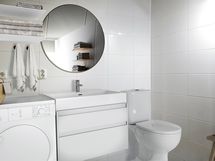 - Suihku, Pesukonevalmius, Peilikaappi, Allaskaappi, Laattalattia, Laattaseinä, Lattialämmitys
