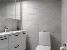 - Pesutilojen kuvaus: Suihku, käännettävä suihkuseinä, pesuallas, allaskaappi, peilikaappi, wc-istuin. Lattia laattaa ja seinät kaakelia. Erillisen WC:n kuvaus: Allastaso, alakaappi ja peilikaappi. Lattia laattaa ja seinät kaakelia.