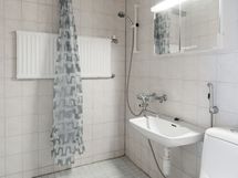 - Pesutilojen varusteet: Suihkuverho, pesukoneliitäntä, suihku, wc-istuin, peilikaappi, pesuallas ja bidee-suihku.