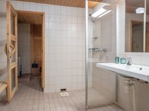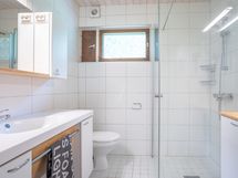 - Varusteet: suihkuseinä, lattialämmitys, WC, suihku, kylpyhuonekaapistot. Alakerran kylpyhuone todella tilava ja sen yhteydessä alakerran WC.