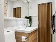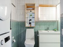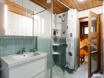 - Pesutilojen kuvaus: Tilava kylpyhuone yläkerrassa josta käynti omaan saunaan. Remontoitu 2000 luvulla. Varustus: suihkuseinä, pesukoneliitäntä, lattialämmitys, wc-istuin, suihku, peilikaappi. Erillisen WC:n kuvaus: Erillinen wc alakerrassa ja wc istuin kylpyhuoneessa. Alakerran wc:n ovi uusittu 2023. Varustus: peilikaappi.