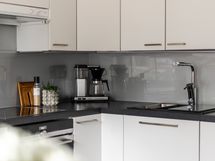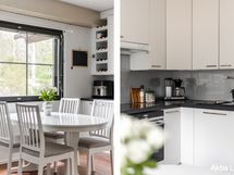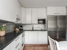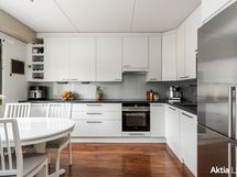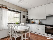 - Liesi: integroitu, induktio, erillisuuni. Työtasot: laminaatti. Kylmäsäilytys: jääkaappi/pakastin. Varustus: liesituuletin, mikroaaltouuni, astianpesukone. Alakerrassa 2015 remontoitu nuorekas Puustellin laadukas keittiö. Keittiöön mahtuu kunnollinen ruokapöytä. Välitilat lasia.